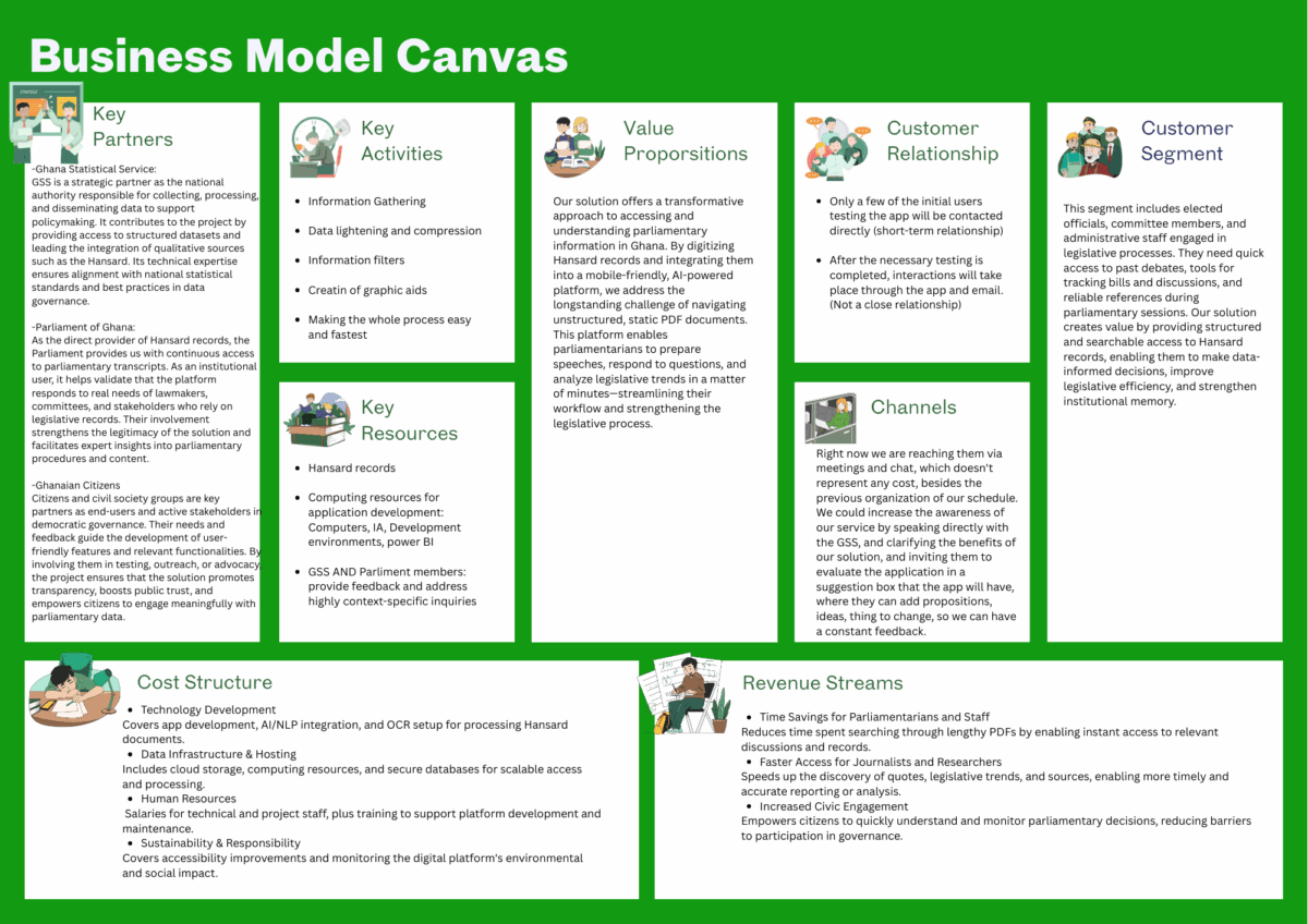 The primary users of this solution include members of parliament, data analysts in the Ghanaian Parliament’s Data Management Department, media professionals, researchers, civil society organizations, NGOs, and academia. These groups frequently consult Hansards for insights into legislative processes, debates, and decision-making, yet face challenges due to the current document format and lack of digital accessibility.