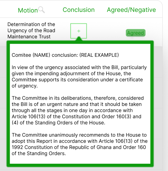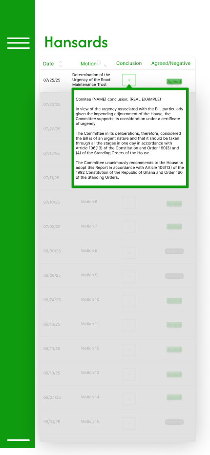 - Agreed/Negative Section: Indicates whether the motion presented during the session was approved or rejected. This status helps users immediately identify the final outcome of the deliberation.
