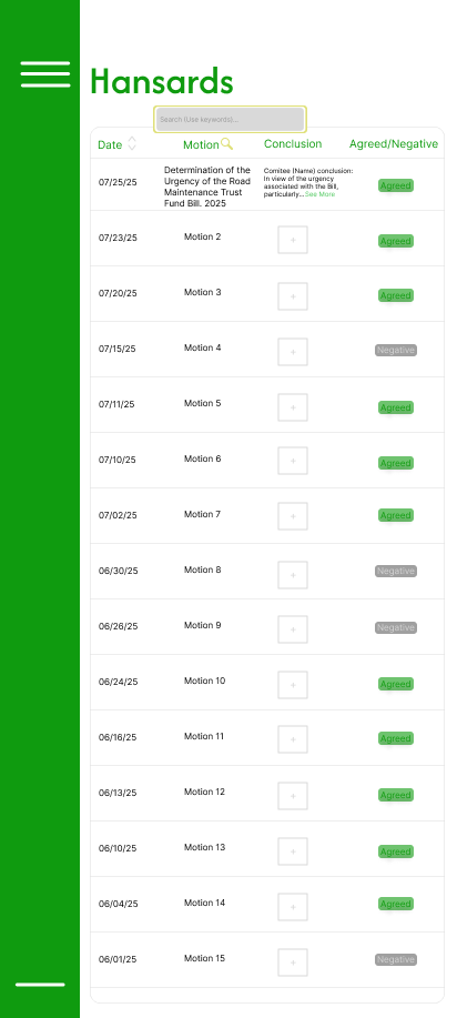 The project proposes the development of a lightweight mobile application that digitizes and restructures the Parliamentary Hansard using artificial intelligence. By leveraging OCR technology and natural language processing, the application would extract and classify the content of debates, enabling intuitive navigation through filters, search tools, and visual dashboards. The solution aims to be available both online and offline. This user-friendly platform transforms Hansards into an accessible resource, promoting timely, inclusive, and informed engagement with parliamentary data.