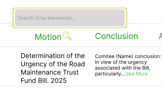 - Motion Section: Summarizes the main topic or objective of the session held on a specific date. It provides a concise description of the central discussion point, enabling users to quickly understand the subject matter before deciding whether to explore the record in greater detail.